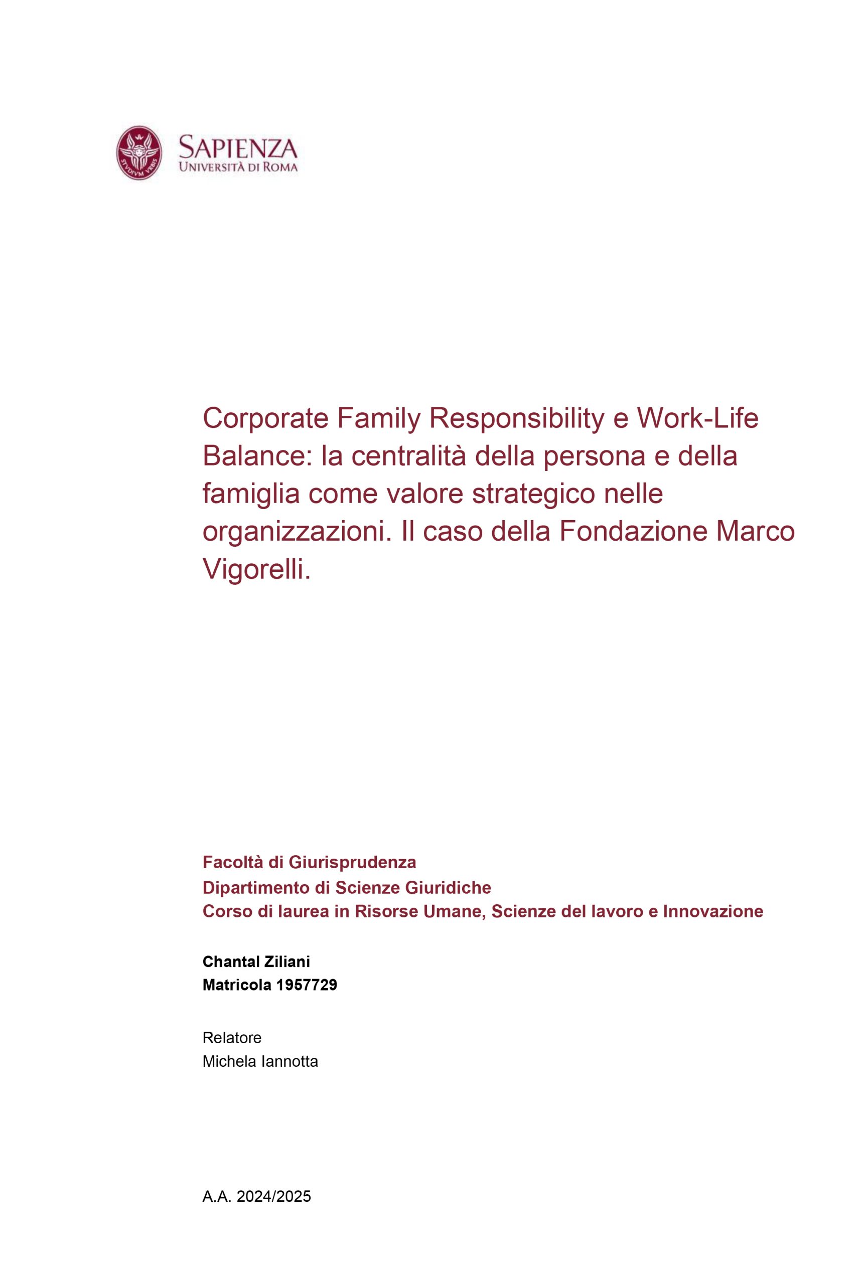 Corporate family responsibility e work-life balance: la centralità della persona e della famiglia come valore strategico nelle organizzazioni. Il caso della Fondazione Marco Vigorelli. Con questo titolo ambizioso, Chantal Ziliani ha presentato il 10 dicembre 2025, alla Sapienza Università di Roma, la sua tesi di laurea magistrale, coronando con successo il percorso di studi presso il Corso di laurea in Risorse Umane, Scienze del lavoro e Innovazione.